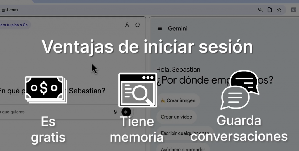 Ambas ofrecen versiones gratuitas, aunque con limitaciones. ChatGPT permite usarlo sin iniciar sesión; Gemini requiere cuenta.